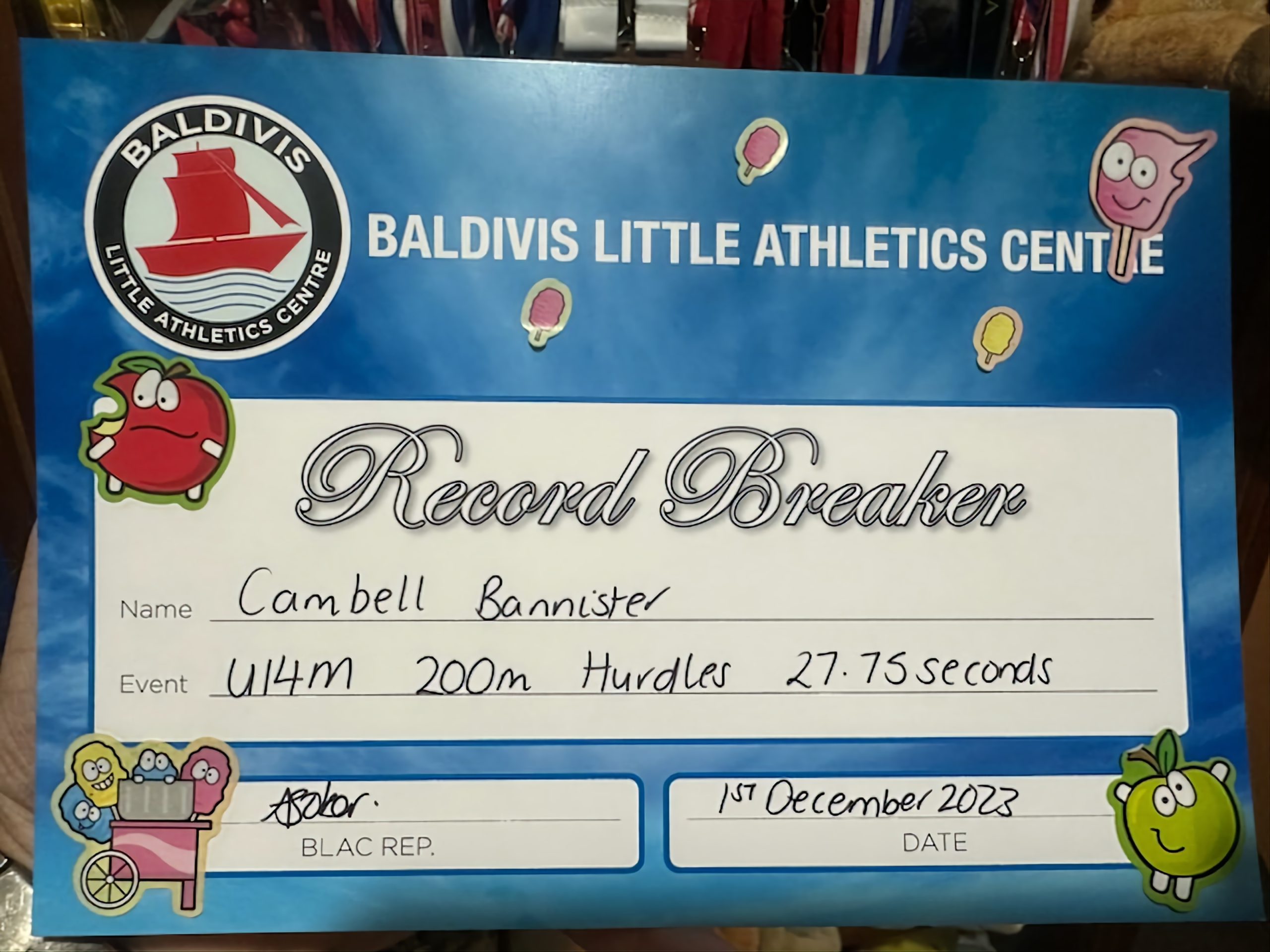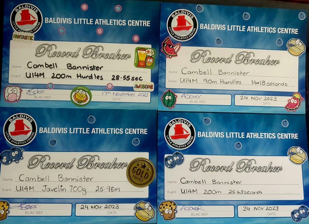 U14 Baldivis Little Athletics athlete Campbell Bannister has broken 8 centre records in one season.