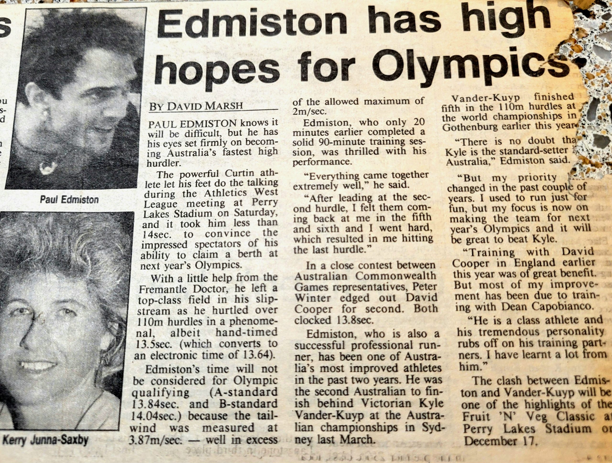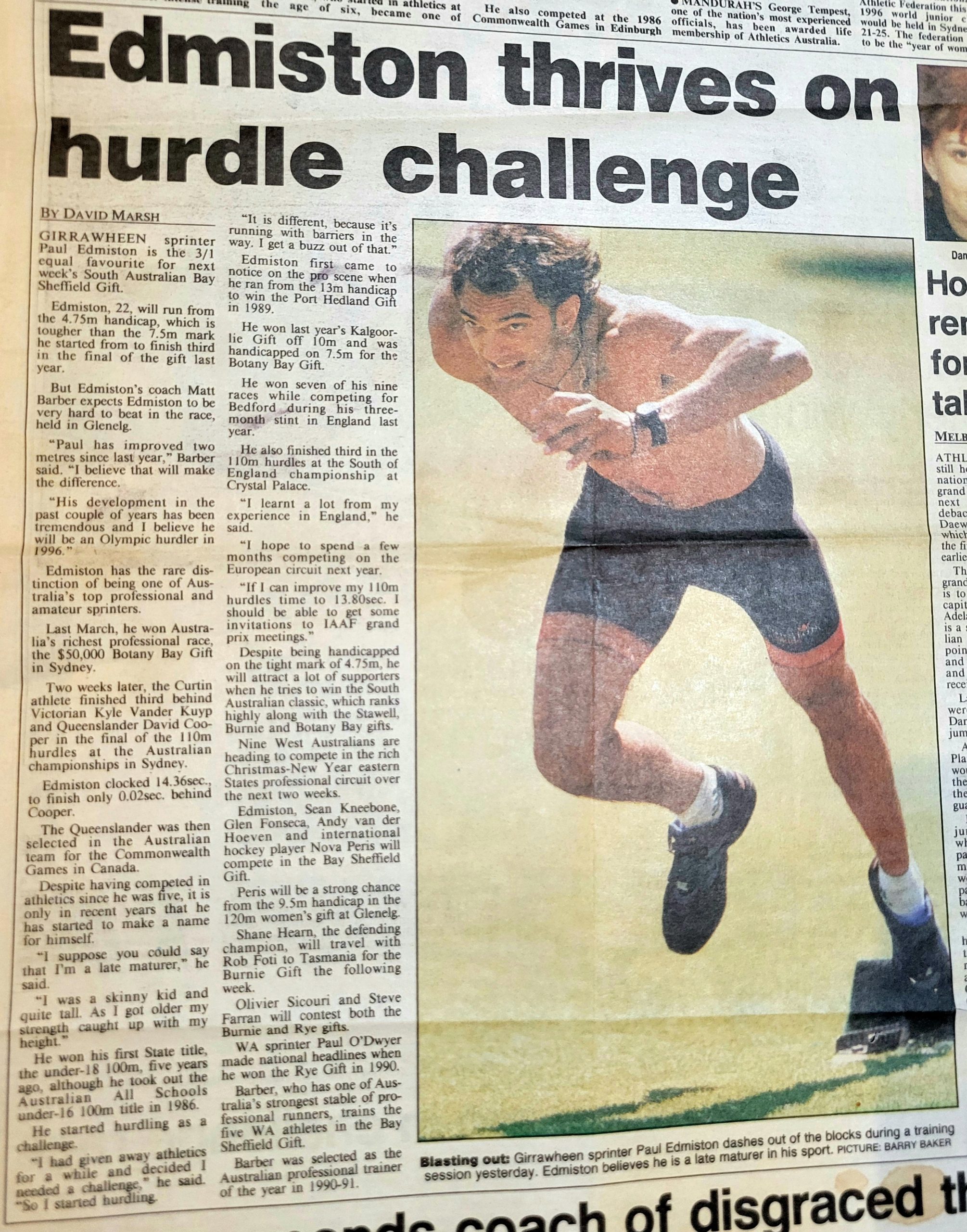 His Coaches: Multiple Olympic Gold Medalist Shirley Strickland (De la Hunty)| Matt Barber | & John Edmiston (father).